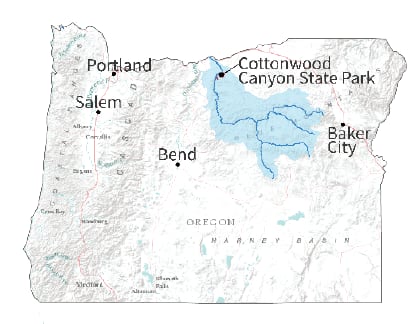 Western Rivers Conservancy has been working for over nine years to conserve the lower John Day River and to protect crucial cold-water tributaries like Thirtymile Creek and Hay Creek. We are currently working to conserve over 20,000 acres at Thirtymile Creek, the most important cold-water tributary on the lower river and a critical site for imperiled summer steelhead. Our effort will also conserve over 12 miles of the mainstem John Day and create the only viable public access to the river along a 70 mile stretch within the Wild and Scenic corridor. Cottonwood Canyon State Park lies at the downstream end and includes 16 miles of the river, 3 miles of Hay Creek and 16,000 acres of protected land.